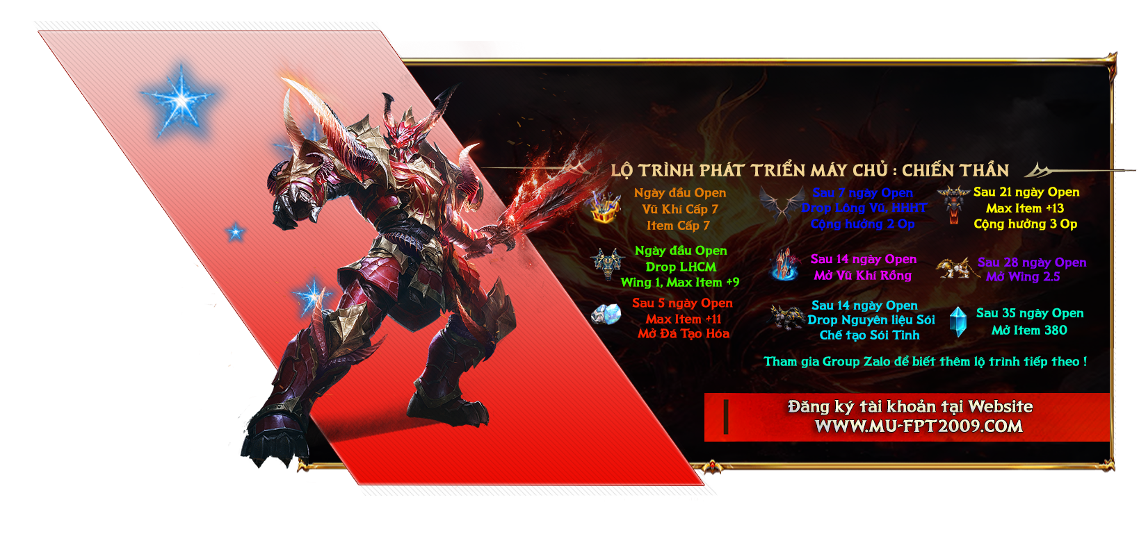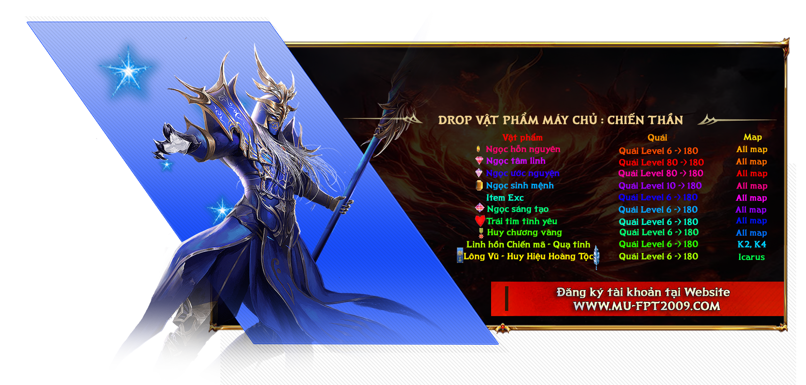 Cuồng Phong Đao, Đao Sinh Mệnh, Q.Trượng Đại Vương, Nỏ Thánh Nữ, Gậy Thiên Sứ, Khuyển Xích Quỷ, Nắm Đấm Quyền Lực